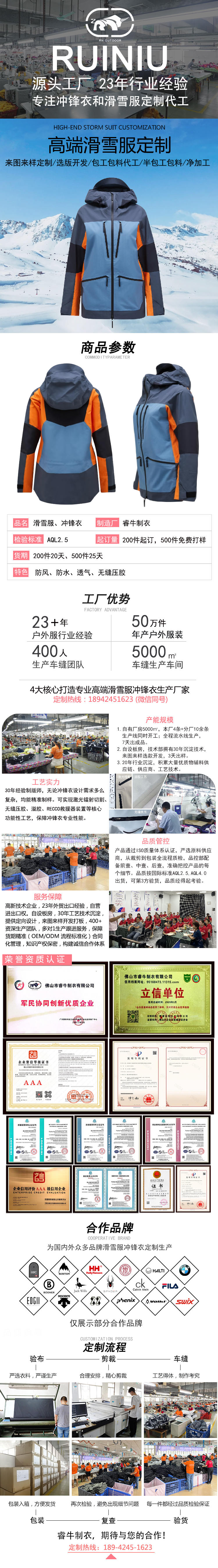 戶外單雙板滑雪服定制